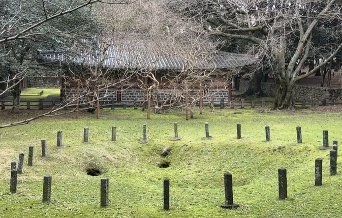 동문시장에서 5분 거리에 있는 삼성혈은 탐라 건국 신화와 관련된 문화재로 지정된 화산