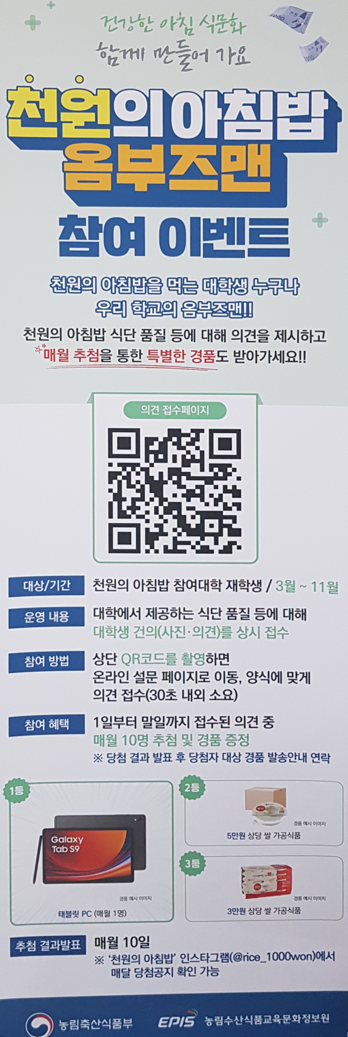 이번 학기도 끝까지 부담 없는 아침밥을 따뜻하게 챙겨 먹을 수 있다.