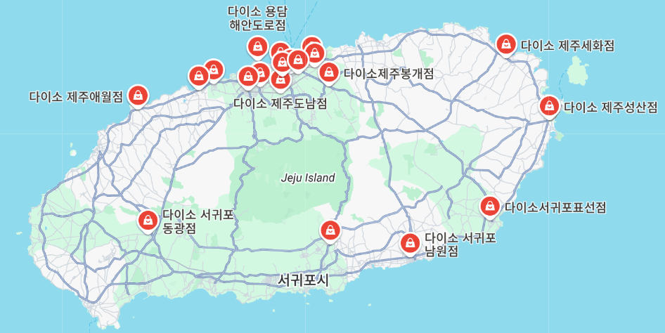 제주에 있는 크고 작은 다이소가 20개에 육박한다. 주로 제주시나 공항 근처에