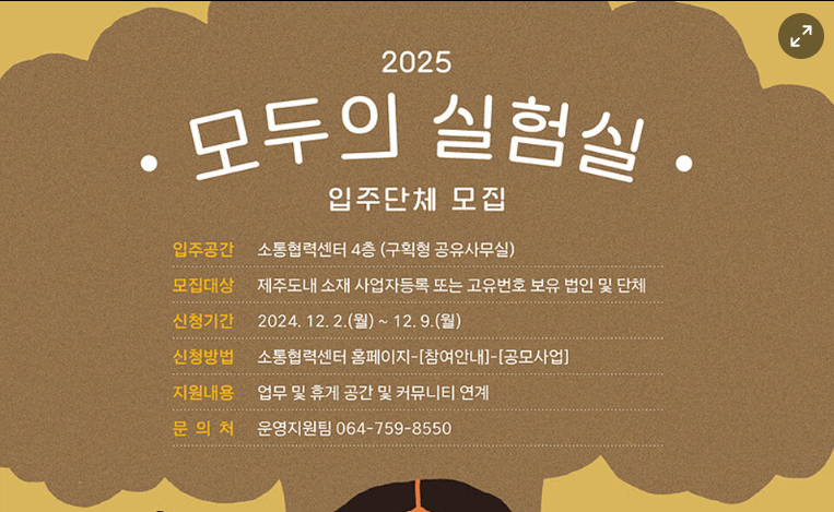 제주 소통협력센터 '2025 모두의 실험실' 입주 단체 모집