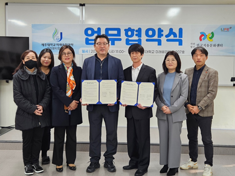 제주대학교 건강뷰티향장학과와 사단법인 한국치유문화센터가 업무를 협약했다.